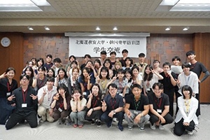 学生交流では、副団長及び韓国の代表学生から挨拶があり、続いて、札幌校の学生から北海道の文化と大学紹介、日本史ゼミの研究内容について発表を行いました。発表後の質疑応答では、多くの質問が寄せられ、学生の高い関心と意欲が感じられる充実した時間となりました。