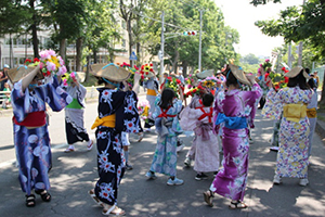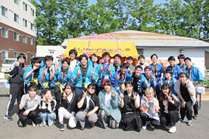 当日は絶好の好天に恵まれ、みこし巡行や踊り(釧路音頭・花笠音頭)の披露、ろうそくもらい、子どもゲームコーナー、夜店、タマゴじゃんけん大会など、大変な盛り上がりとなりました。学生たちは、当日のみこし巡行や踊り、縁日やゲーム大会だけでなく、実行委員として祭りの運営にも参画し、会場準備や後片付けも行いました。