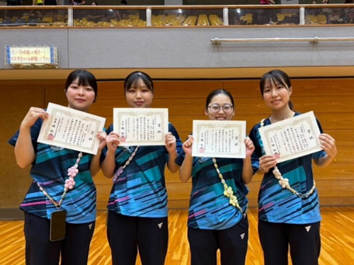 旭川校卓球部は、女子現役団体戦3位、清杉愛花さん(美術分野3年生)が女子シングルス3位、清杉愛花さん・木下瑞葵さん(英語教育専攻4年生)組が女子ダブルス準優勝の戦果を上げました。